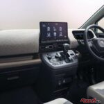 車内で筆者の目と気持ちが一気に吸い込まれたのはインパネデザイン。ここですよ!! 新型フリードの最大のトピックといっていい。フィットのインパネデザインをさらに大人っぽく上質に仕立てた雰囲気で、運転席と助手席前のこだわりの布パッド素材がステキすぎる。これぞ「お部屋にいる感覚」。
