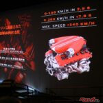 車名にシリンダー数を冠するだけあって搭載されたエンジンの排気量は6,5L。最大出力は830ps、最大トルク69.1kgmを発生させ、最高許容回転数は9500rpmと超高回転型エンジン。今後、実際にドライブできる機会があれば自然吸気エンジンのエキゾーストノートを堪能したい。