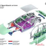 おっそろしいのは空力。EVの航続距離を左右する重要な要素だが、アバントですら0.24、スポーツバックにいたっては0.21という凄まじい数値を叩き出している。これはボディ形状だけでなく、ホイール内やアンダーボディなど、細部のエアロダイナミクスを突き詰めた結果であるそうだ。