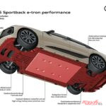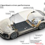 駆動系はどうか。新型A6のリチウムイオンバッテリーは総容量100kWhという巨大なもの。モーター出力はノーマルで270kW(367ps)、S6では370kW(503ps)を発揮する。航続距離は前車のスポーツバックで756km、後車のスポーツバックが675kmとのことだ。