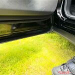 CX-80のドア、しかも下のほうをじっくり見てほしい。一見敷居(サイドシル)のようなパーツが前後を貫いているが、実はこれ敷居じゃなくてドアの一部。