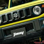 ジムニーの縦スリットは5本でブラックアウトされ、スリットの中はハニカム形状になっている。ちなみにジムニー5ドアのスリットは枠がメッキ加飾だ。
