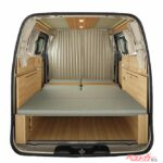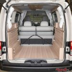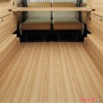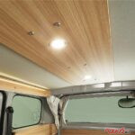 メーカー自身がアレンジしただけあって、室内の作りはさすがの「純正感」が漂う。インテリア全体にナチュラル系のファブリックと木目調パネルを使い、リラックスした空気を味わえる。