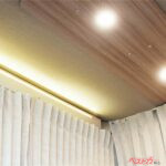 照明だが、天井には明るいスポット照明を用意したほか、サイド部分に雰囲気を高める間接照明も用意している。天井のスポット照明は明るさ調整も可能だ。