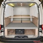 「NV200 バネット MYROOM」は、「キャラバン MYROOM」に続くマイルームモデルとして、コンパクトなサイズで日常使いでの使い勝手も兼ね備えたモデル。お気に入りの部屋をそっくり自然の中に持ち込んだ感覚で、ゆったり車中泊ライフを楽しむことができる。
