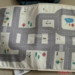 見た目は緑のブリーフケースで、サイズは縦20cm×横25㎝×マチ7cm。幼児が片手で持てる大きさなのがGOODなのです。中には道路と線路を描いたマットが入っていて、こちらの大きさは、縦32cm×横47cm。子供がおもちゃを広げて一人遊びするのに最適な大きさでしょう。