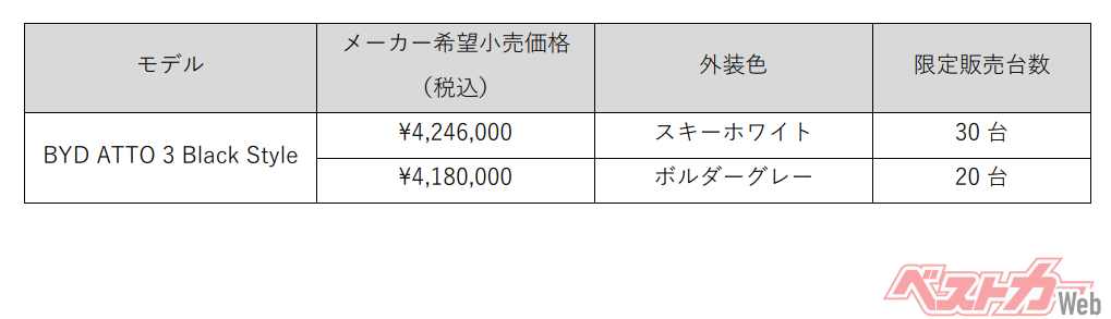 2023年の発売以来、価格以上の装備やちょうど良いサイズ感で高評価を得ているミドルサイズEV「BYD ATTO 3」。その人気モデルに、BYD Auto Japan設立3周年を記念した特別限定仕様「BYD ATTO 3 Black Style」が登場しました。