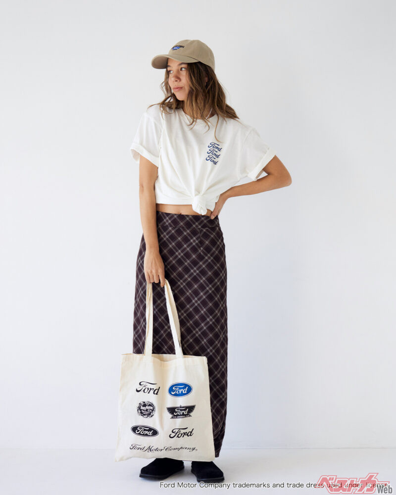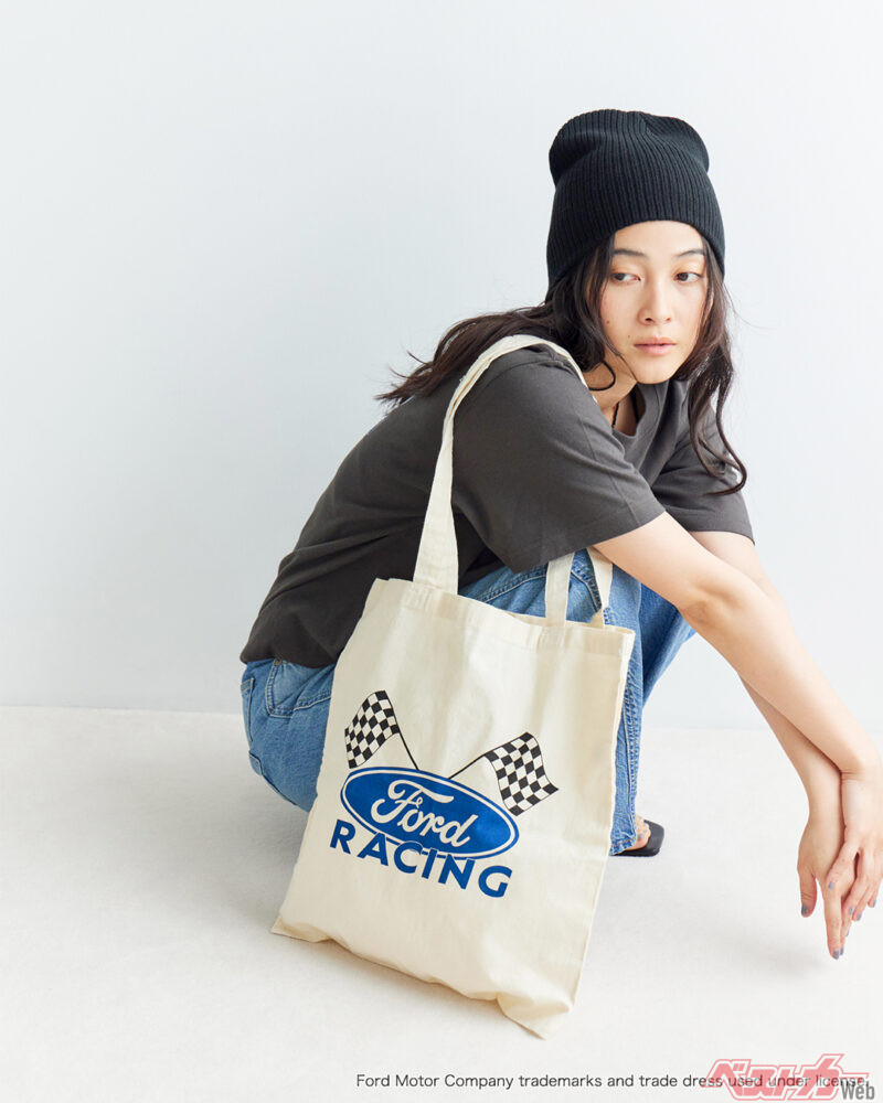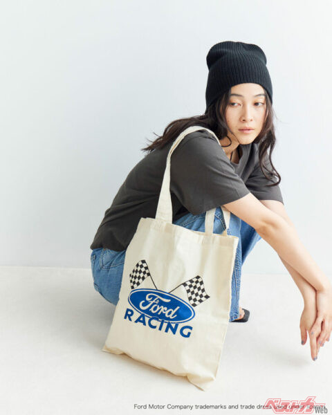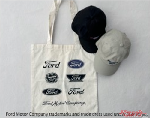 ロゴキャップは、普段のコーディネートにも合わせやすいブラックとベージュの2種類用意されています。トートバックも収納性に優れるだけでなく、片面には6種の歴代フォードのロゴデザインが!
