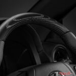 F SPORT Mode Black IVは、専用鍛造アルミホイールにBBS製ブラック塗装を採用。ドアミラーにもブラック+スモークメッキ加飾をプラスして精悍さが強調されている。また、専用のディンプル本革ステアリングもISの持つスポーティさを強化するものに。