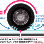加えて、「親水性ポリエステル」が雪上で発生する水分を吸収。雪道やアイスバーン、シャーベット状の路面でも優れたグリップ性能を発揮します。さらに、走行中に自然と中心に戻る「オートセンター機能」も搭載しており、ズレにくく安定した走行が可能です。