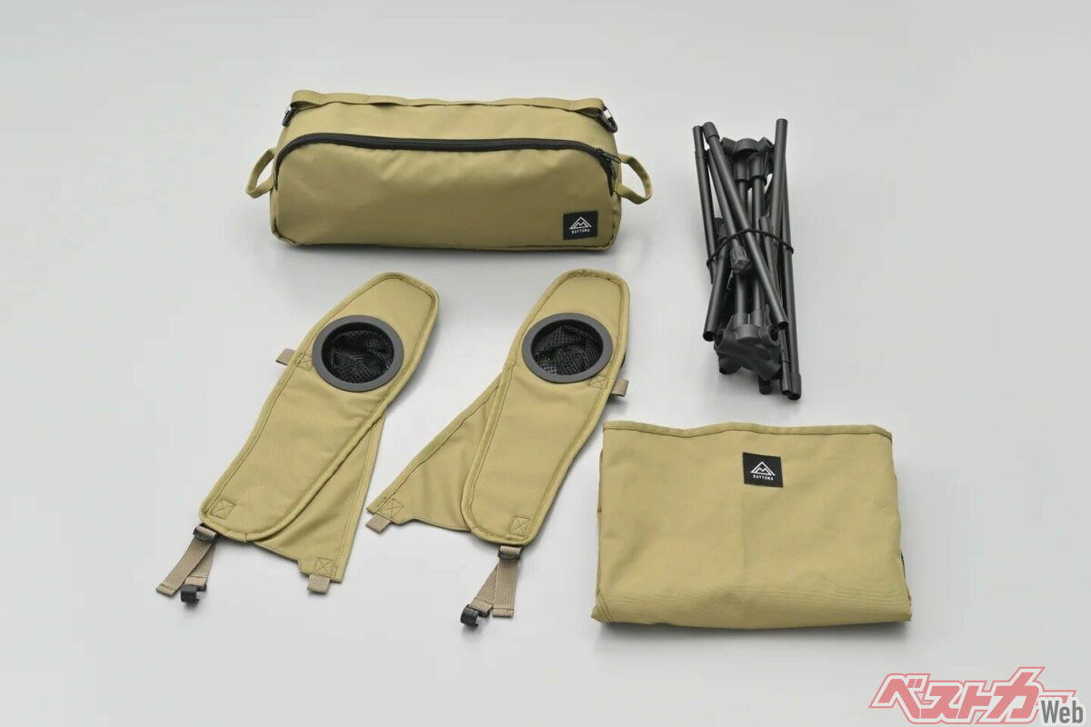 また、収納バッグにはパルステープ&カラビナが標準装備。チェアの足元に固定して小物入れとして使ったり、バイクやクルマの荷物スペースにもスマートに固定できます。フェス、ピクニック、ベランピング、車中泊、どこへでも持ち出したくなる「旅する椅子」といえるでしょう。