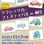 群馬県桐生市で2025年11月2日に開催が予定されている「第18回クラシックカーフェスティバルin桐生」の参加車両およびガレージセール出店者の募集が同年8月8日より始まりました。
