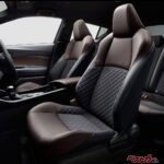 まずはドアトリムオーナメント。ひじ掛けを挟んで上下にダイヤモンド形状を細かく入れた。ドアインナーハンドル部分もダイヤモンド形状だ。そしてクルマに乗り込み天井へ目をやると、ここにもダイヤモンド。アシストグリップ周辺もダイヤモンド型にくぼんでいる。