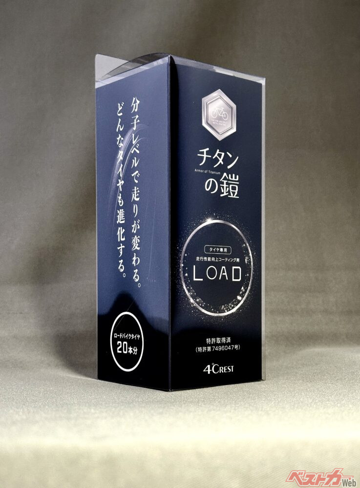 株式会社クレストヨンドが8月25日に発売する「チタンの鎧-LOAD-」は、酸化チタンナノ粒子を応用したタイヤ専用コーティング剤。価格は3960円(税込)で、ロードバイクのタイヤなら約20本分に施工可能だ。販売は公式オンラインショップ、Amazon、全国の取扱自転車店などで行われる。