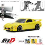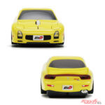 ボディは『頭文字D』第1巻に登場したFDを忠実に再現。光沢のある黄色い外装、流線型のフォルム、ホイールやヘッドライトの造形までこだわり抜かれています。