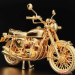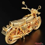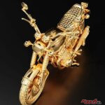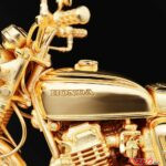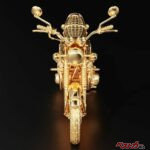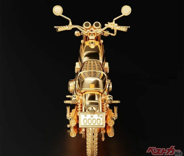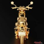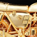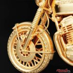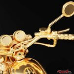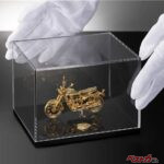 実車のマフラーやエンジン、サイドカバーはもちろん、キャブレターやワイヤー類といった細部に至るまで徹底的に調査され、ジュエリー職人の手作業で忠実に再現されています。