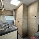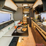 続いてキャンピングレンタサービス工業の「エメロード376 VIP Hybrid II」。フランスのトリガノ社がつくるキャンピングトレーラーを部分的に変更した1台です。牽引免許不要ながら、ダブルベッドや2段ベッドにできるテーブルセットやキッチン、トイレ・シャワールームを備えた高機能トレーラーです。