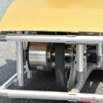 電動パワートレーンは、当初最高速60km/h(車体+ドライバーで70kg時)を狙って設計。12Vバッテリー2個を直列にし24Vとしたうえで、スーパーキャパシタで48Vに昇圧。さらにコアレスモータ社に特注したモーター(車いす用トルク重視設計)を駆動し、加速力と回生発電による効率化を目指した。