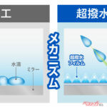 また、「ゼロワイパー フィルムタイプ 」ならシリーズ共通で、フィルムに超微細な突起が形成されており耐久性の高さも十分。しかも洗車時に水洗いやクロスで拭いても、超撥水効果が持続するというスグレモノ。