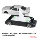 サイズ感もなかなか絶妙。ちょっと大きめのティッシュケースサイズながら、どの角度から見てもGT-Rにしか見えない。しかもルーフ部分がスライドしてウェットティッシュが取り出せるギミック付きで使い勝手も実用的。