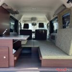 同キットのベース車はスズキ エブリイ(JOIN)もしくは日産 NV100クリッパー(GX)。家具とベッドシステムを車内に組み込むことで、昼は座ってくつろげるリビングモード、夜は大人が横になれるフルフラットベッドに展開できます。