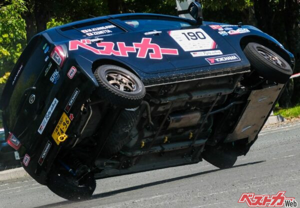 ●第3位…MTターボ「ミライース」が片輪で踏ん張ったけども!!? ”サイドブレーキ封印”宣言!!! ラリーでまさかの横転で大反省の巻