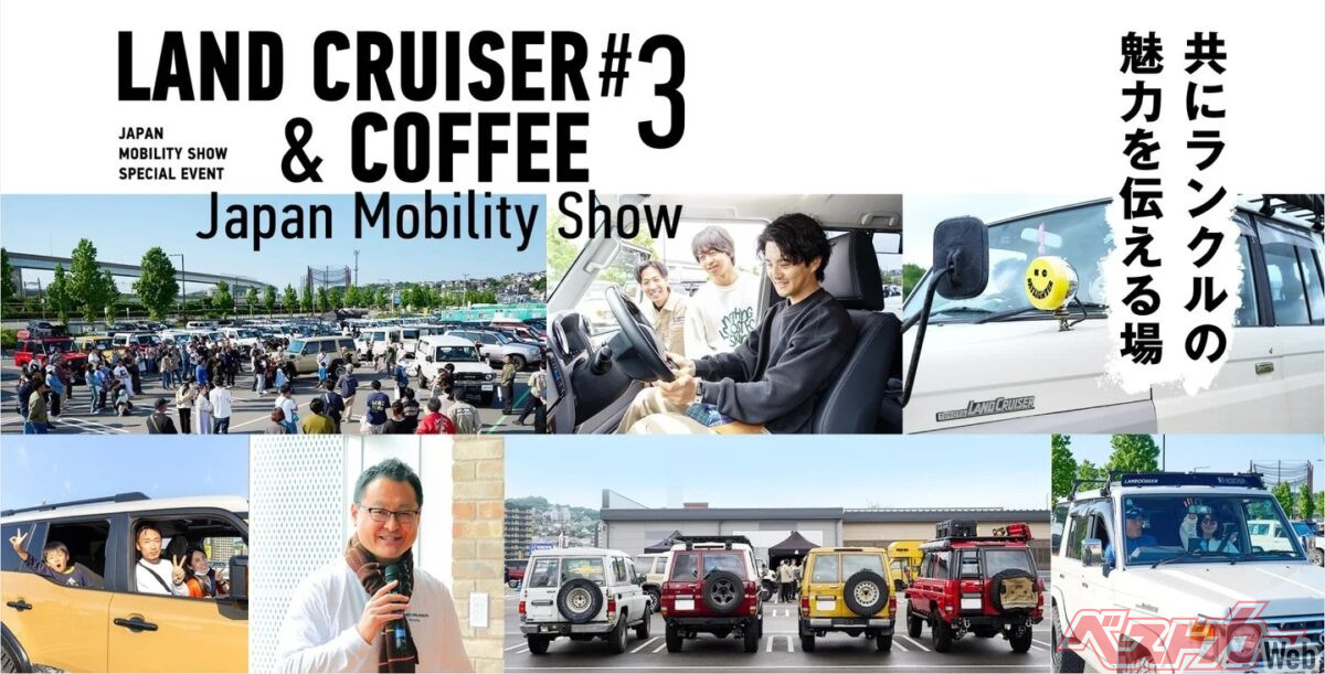 トヨタは、ジャパンモビリティショー会場でランクルファン主体の交流イベント「LAND CRUISER & COFFEE #3 Japan Mobility Show」を11月3日に実施すると発表した。交流だけでなく様々なイベントが用意されており、ランクルファンを楽しませてくれそうだ。