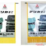 三菱自動車が9月18日に発表した「新型デリカミニ」。チャームポイントの“目”がさらに大きくなって、存在感もグッと増した。で、そのお披露目会場でクルマの横に展示されていたのが……なんと「懸賞幕」! しかも大相撲秋場所(9月14~28日)で実際に掲出されているやつだというから驚きだ。これは気になる! ということで、早速取材してみた。