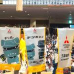 三菱自動車が9月18日に発表した「新型デリカミニ」。そのお披露目会場でクルマの横に展示されていたのが、ファン垂涎のデリ丸。が描かれた「懸賞幕」だ! 両国国技館で行われている「大相撲九月場所」(9月14~28日)で掲出するとされていた懸賞幕だが、ついに土俵上に、その姿を現わした!