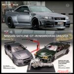 20世紀末から21世紀にかけての名車のひとつで通称R34と呼ばれる日産 スカイライン GT-R(BNR34)の18分の1スケールミニカーが発売される。ドアやボンネットの開閉機構にくわえ、精巧な内装再現など鑑賞性の高い仕様が特徴だ。