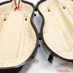 このチェロケースは、国内外で活躍する若手チェリスト・柴田花音さんのために製作された、フルカーボン製の特別仕様モデル。デザインを手掛けたのは、イタリア・ミラノの名門カロッツェリアZagato(ザガート)のチーフデザイナー・原田則彦氏。レーシングスピリットとイタリアンデザインが見事に融合している。