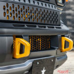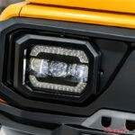 『CH:AMP』のデザイン最大の特徴は、フロントグリルとバンパーを大胆に一体化した造形だ。ダクトやリブ、凹凸の効いたフェイスは見る角度によって異なる表情を見せ、まるで海外ピックアップのような存在感を放つ。八角形ヘッドライトには3連プロジェクターとコの字型ポジションランプを内蔵し、夜間の印象も大きく変化。純正LED仕様とハロゲン仕様の両方に対応している点も嬉しい。