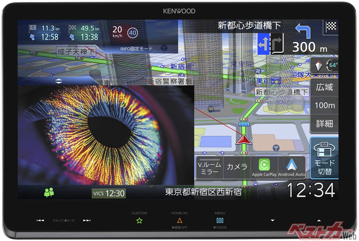 「MDV-MX12F」は、“彩速ナビ”シリーズで初の10V型大画面に加え、Apple CarPlay/Android Autoのワイヤレス接続に対応。スマートフォンの音声アシスタント(Siri/Googleアシスタント)を使えば、メッセージ送信や音楽再生、ルート検索などを声だけで操作できる。さらに、ナビアプリとスマホ地図アプリをワンタッチで切り替え可能だ。
