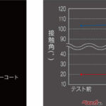 ヴェリス最大の特長は、接触角(撥水力)を高めつつ、転落角(水が滑り落ちる角度)を低減させた新技術「高密度反応硬化型シロキサン系トップコート」にある。