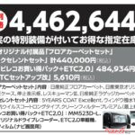 こちらはなんと、特別装備付の指定在庫車なら合計77万円の特別値引き! ナビやドライブレコーダー、ETC2.0、ボディコーティングなどを含む充実の特別装備を載せたうえで、車両価格は446万2644円(税込)となっているようです。