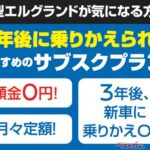 さらに36回支払いののち、車検を迎える前の3年目には、新車へ乗りかえも可能というのがポイント! 新型エルグランドに興味を持つ人が、まず現行型でブランドの世界観を実感し、タイミングによっては新型がもちろん次の1台へ移れるよう配慮された内容になっています。