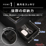 まず特筆すべきは引き出し式収納ボックス。サングラス、カード類、充電ケーブル、アルコールスプレーなど、散らばりがちな小物を一瞬でまとめられる。リリースにも「Before/After」の画像があるが、想像以上にスッキリ片づく印象だ。