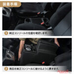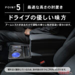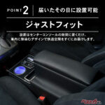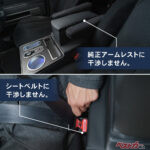 センターコンソールの隙間に置くだけで装着完了。純正アームレストやシートベルトに干渉しない設計は、車種専用品ならでは。取り付けのために工具不要、届いたその日に使えるのもポイントだ。
