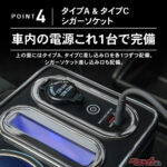 タイプAとタイプCの差し込み口を上面に1つずつ設ける定番設計ももちろん健在。さらに、シガーソケットの差し込み口も備わっています。同社の他モデル製品同様、スマートフォンやアクセサリーの充電に必要な電源がこのボックスだけで完結する構成です。