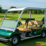 既存のゴルフカートに後付けで設置できるのもポイントで、取り付けは1日で完了するとのこと。2人乗りと5人乗りのカートに両方に対応しており、導入に伴う車両本体の外観や重量に大きな変更がないのも安心です。
