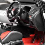 外観のディティールだけでなく、内装も緻密に作り込まれているぞ。インパネやシート形状、車内の雰囲気まで細かく再現。これぞタイプR! と言わんばかりに赤いフロアマットやシート、アルミ削り出しのシフトノブなども手抜かりなく揃っているぞ。