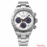 文字盤の12時位置には、各モデルの型式をモチーフにしたインデックスが大きく配置されています。知る人にとっては一目で車種が分かる記号であり、腕時計を見た瞬間にクルマのことを思い出せるようなデザインです。