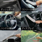 ヘッド部は柔軟素材のため、硬い樹脂パネルやガラスにも優しい。掃除後は薄型ゆえドアポケットやシートバックに収まり、カバーを外して洗えば繰り返し使える。年末だけでなく、普段使いにも向く実用派アイテムだ。
