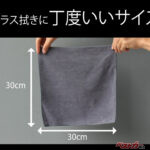 乾拭きでホコリや軽い汚れを落とし、水拭きで頑固な汚れに対応できるため、内窓のくもり、手アカ、タバコのヤニ汚れまで幅広くカバー。約300×300mmというサイズ感もガラス拭きにちょうどいい。外窓にも使えるので、1枚積んでおくと重宝するだろう。