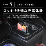 電源面も抜かりない。上面にはUSBタイプAとタイプCを各1基、さらにシガーソケットも装備。USBは最大20W〜22.5W対応で、スマートフォンやデバイスの同時充電も余裕だ。ワイヤレス充電対応モデル(参考価格1万3800円〜)と非対応モデル(1万1800円〜)が用意され、予算や使い方で選べるのも親切だ。