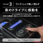 夜間の使いやすさにも配慮されている。ワンプッシュで点灯するLEDライトは3段階で明るさ調整が可能。暗い車内でも中身が一目で確認でき、地味ながら満足度の高い装備といえる。