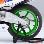 サスペンションは可動式で、ブレーキディスクは金属製。チャンバーの質感表現やエンジン周りの作り込みも抜かりなく、脱着式カウルにより内部構造を楽しめるのも模型好きには嬉しいポイントだ。