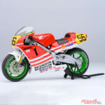 さらに、ホンダ協力のもと実車NSR500を3Dスキャニング。カウル内部に至るまでデータ化し、コミック資料や実車写真と照合しながら造形を詰めている点は、さすがAUTOartといったところだ。ロゴ、ゼッケン、カラーリングも漫画仕様を忠実に再現している。