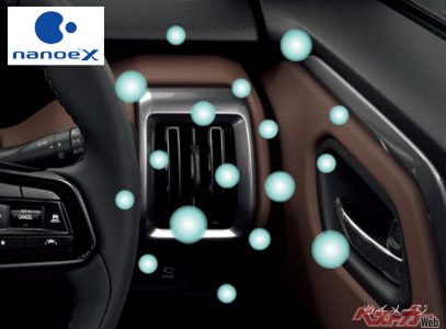今回採用されたパナソニック製ナノイーXは、空気中の水分に高電圧を加えて生成される微粒子イオンである「ナノイー」を進化させたものとなる。ナノイーは花粉やカビ、菌・ウイルスなどに含まれる水素を抜き取り、有害物質の働きを弱めてくれるが、それがナノイーXとなることでより強化されるのだ。