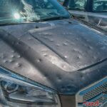 (1)見た目のインパクト大: ボンネットやルーフがゴルフボールの表面のように凸凹になっていることも多く、雹の規模によっては細かくペン先で突っついたような凹みが無数にできるケースもある